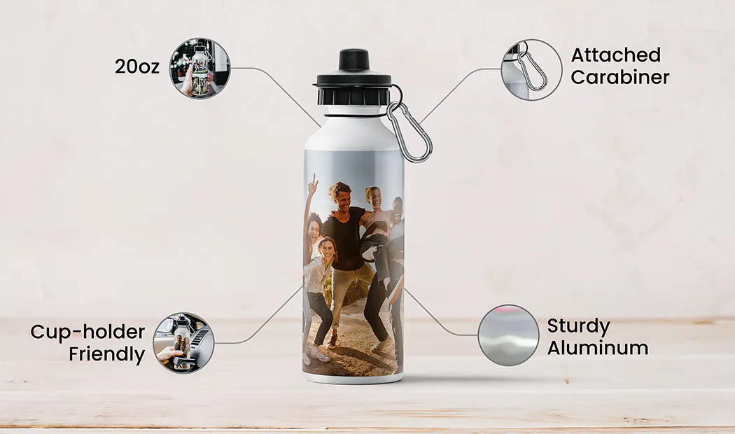 Wave goodbye to plastic bottles and say hello to personalized water bottles! They’re a fun, unique and environmentally friendly way to stay hydrated. By adding your own photos and text to this personalized water bottle, you’ll be proud to show it off when on the go.