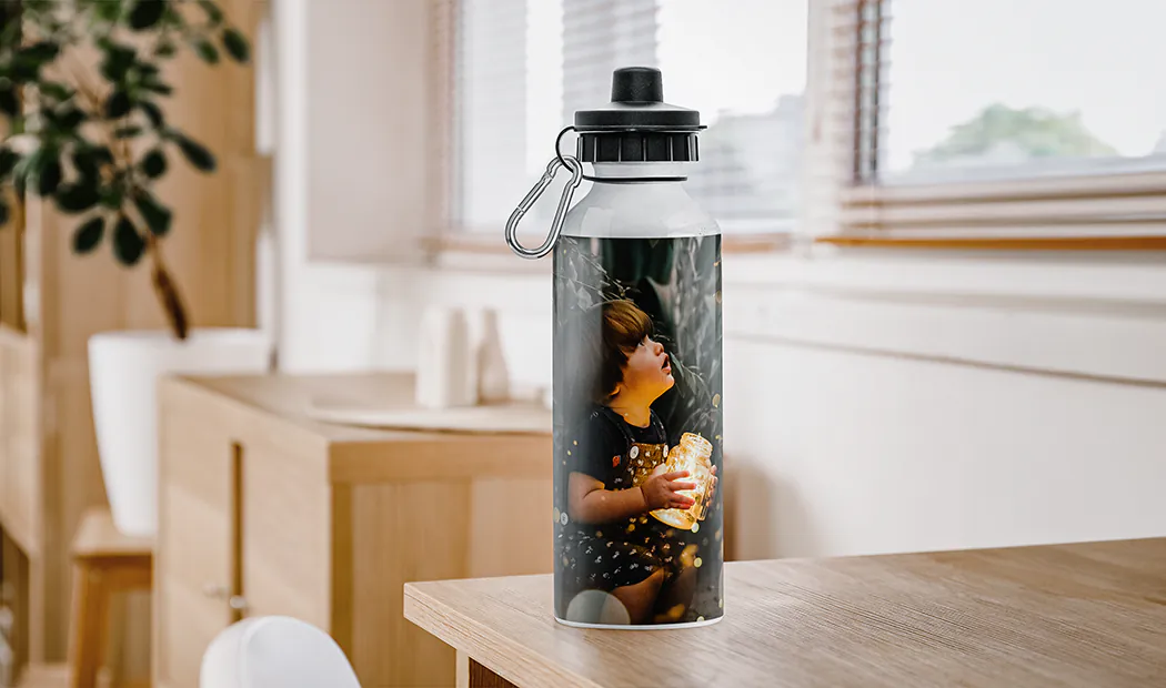 The sleek, shiny aluminium finish brings out the details of your photos and makes for an ideal backdrop. You’ll love this custom photo water bottle so much you’ll want to give one to your friends and family. So why not get really creative and give this practical present to someone special!